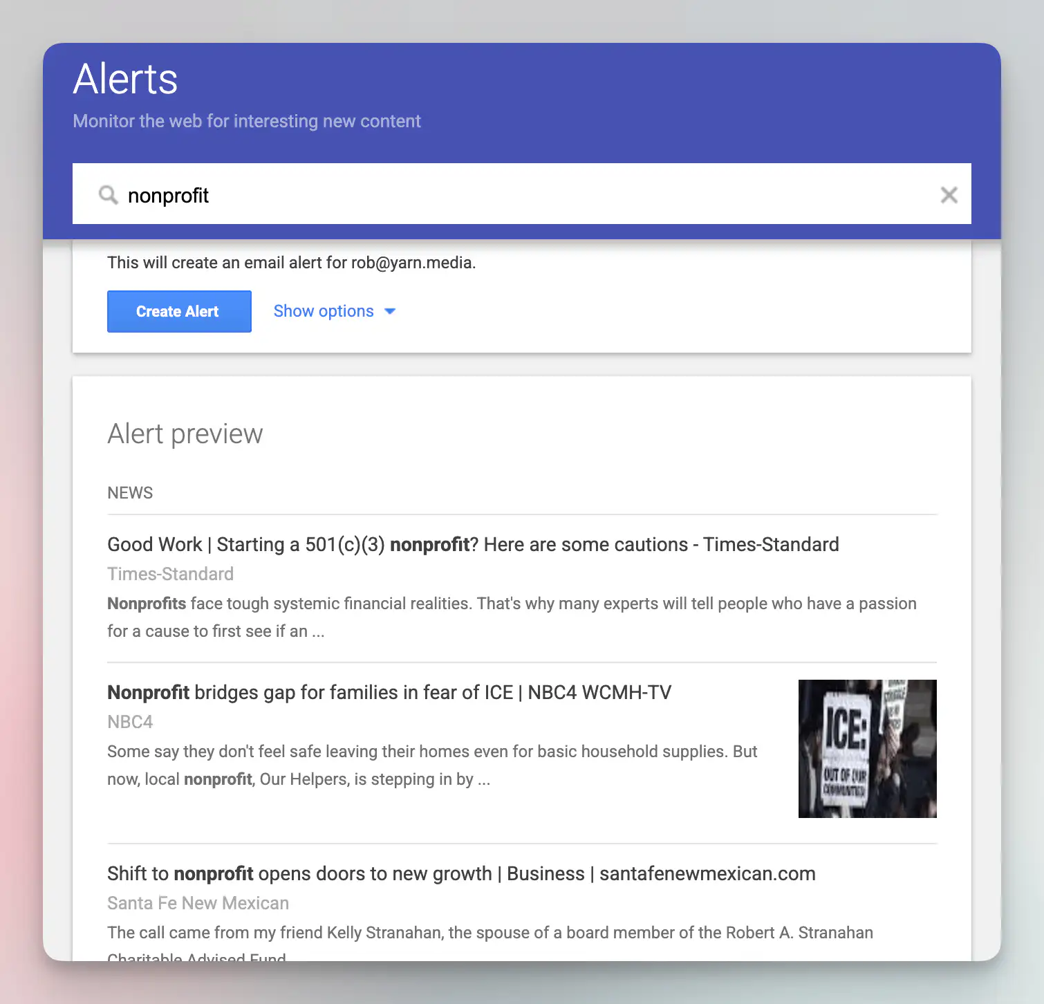 Google Alerts can remove friction, especially when your team is small and your donor list is big.