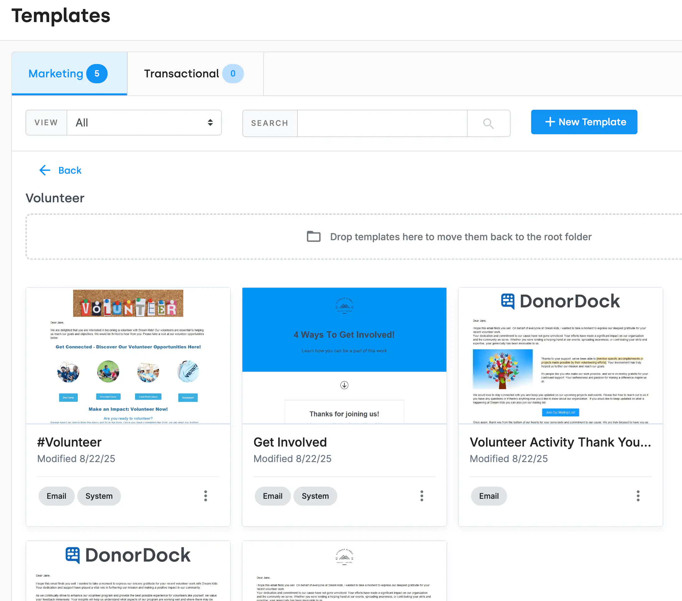 Start with professionally designed templates for thank-you letters, donation receipts, annual appeals, event invitations, newsletters, and more. Customize any template to match your organization's branding, then save your own templates for repeat use.