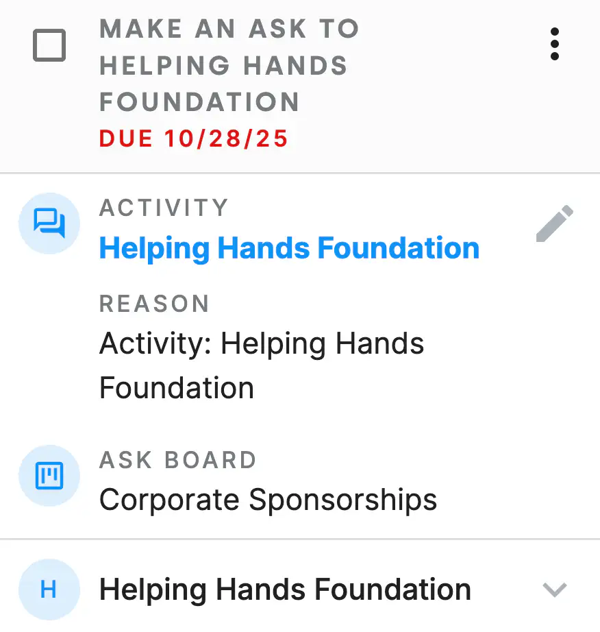 While Ask Boards are ideal for major gift pipelines, they work for any revenue pipeline — grant applications, sponsorship requests, planned giving prospects, capital campaign pledges, and corporate partnerships. One tool, unlimited pipeline types.
